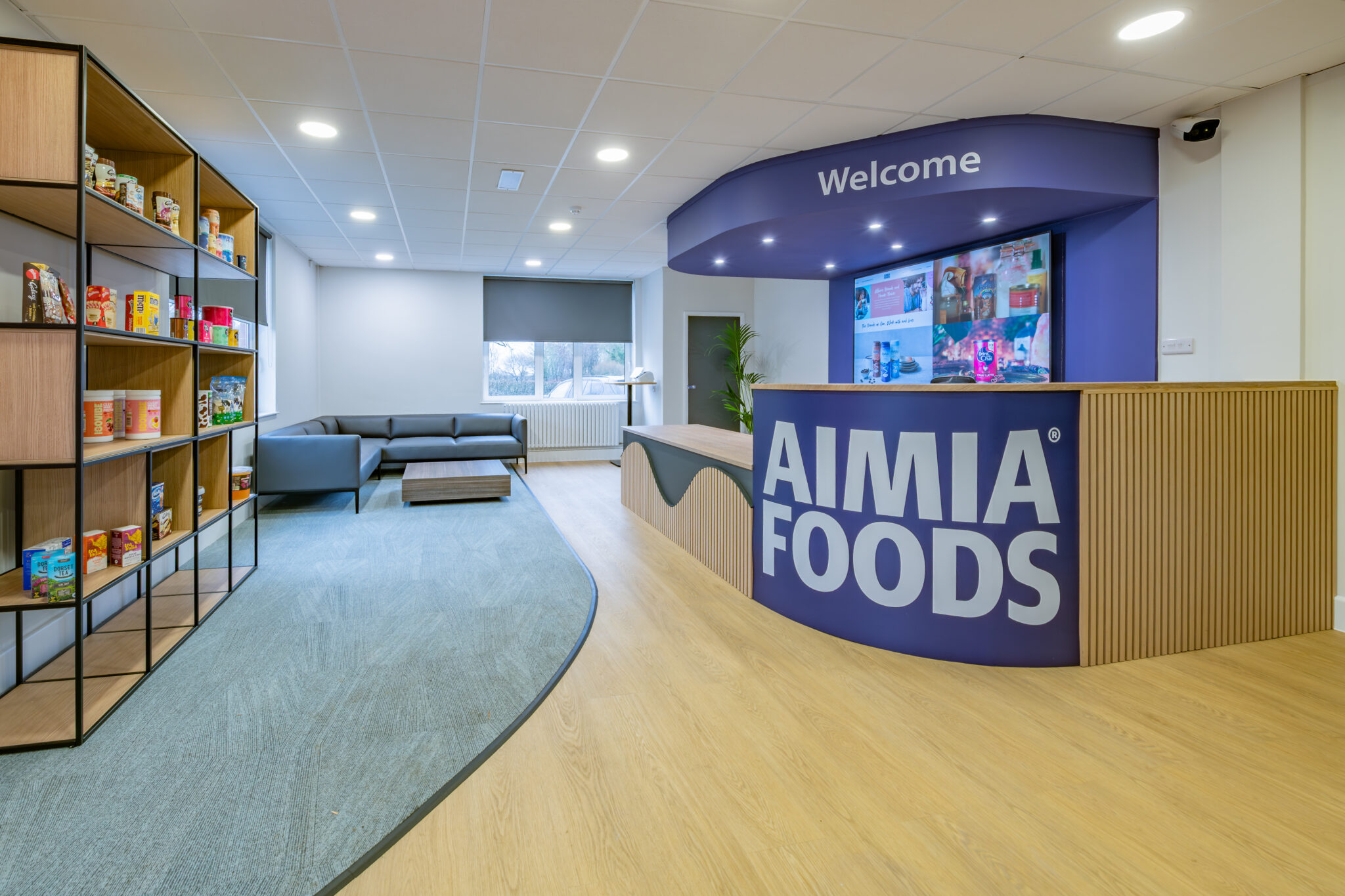 - The completed reception provides Aimia Foods with a welcoming, contemporary arrival experience that reflects the brand’s values and identity.