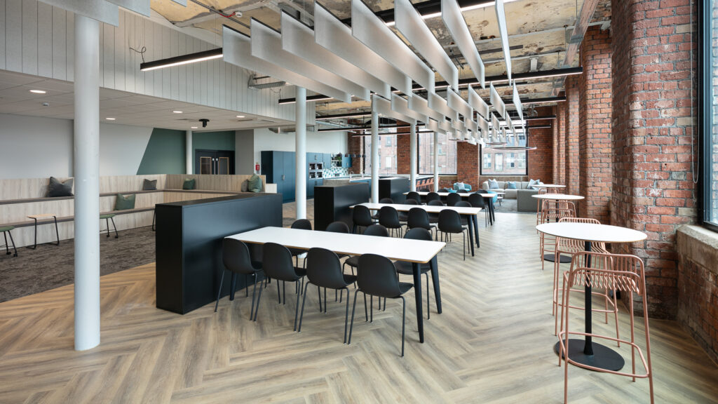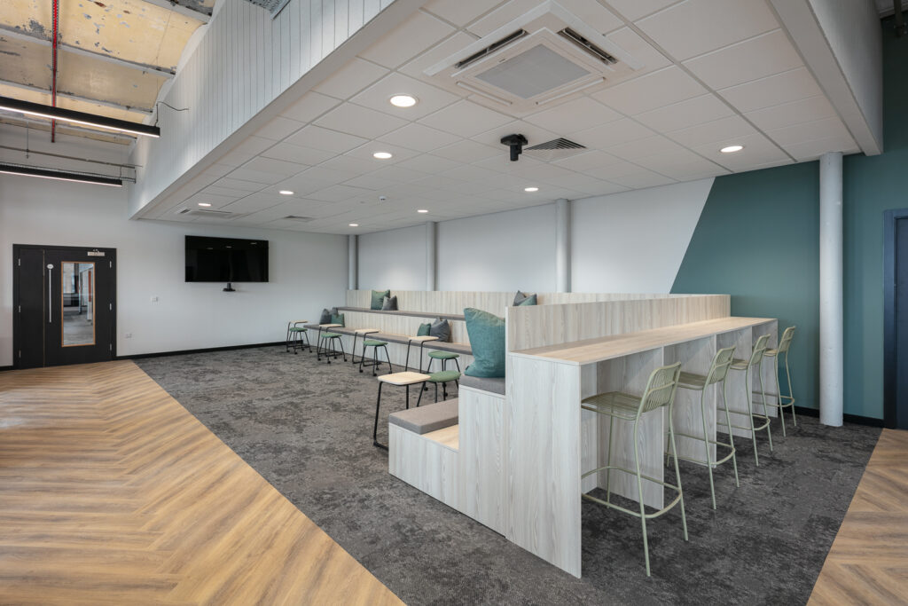 The brief was to create a modern workplace that balanced collaboration, focused work and staff wellbeing within an existing building shell.