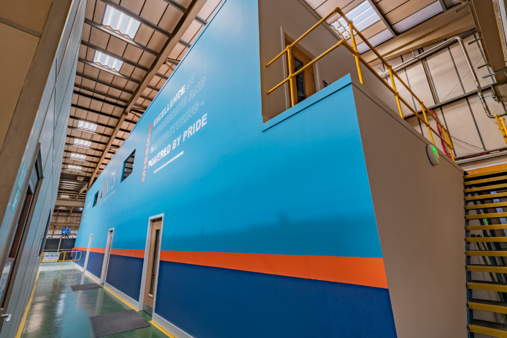 The finished environment balances functional engineering requirements with modern office, meeting and welfare spaces.
