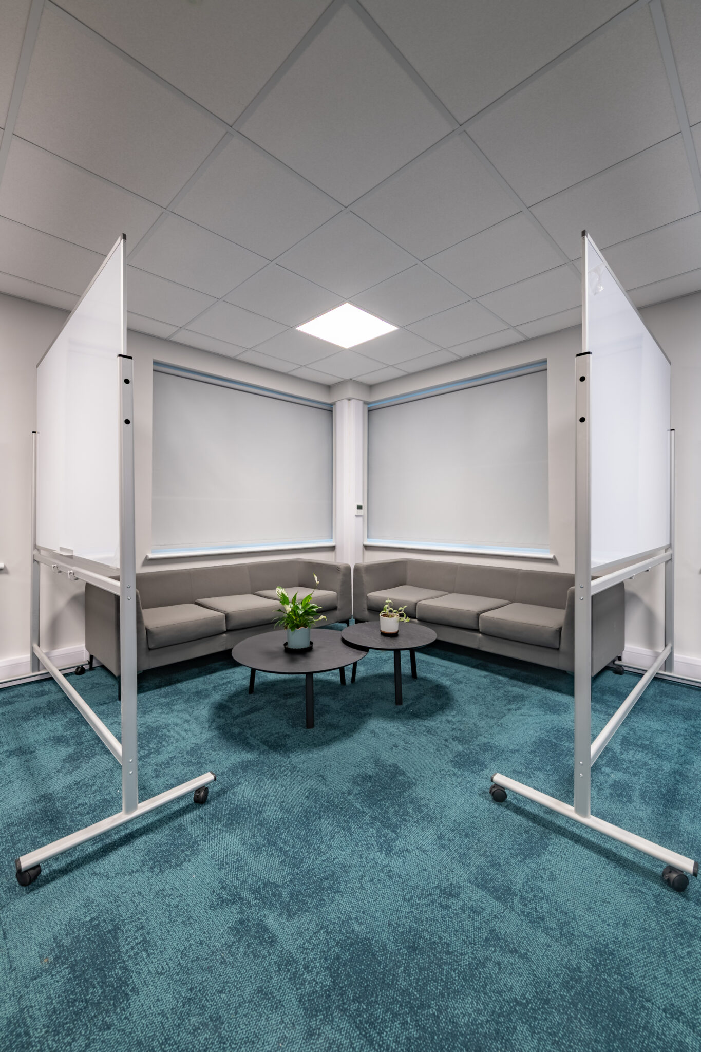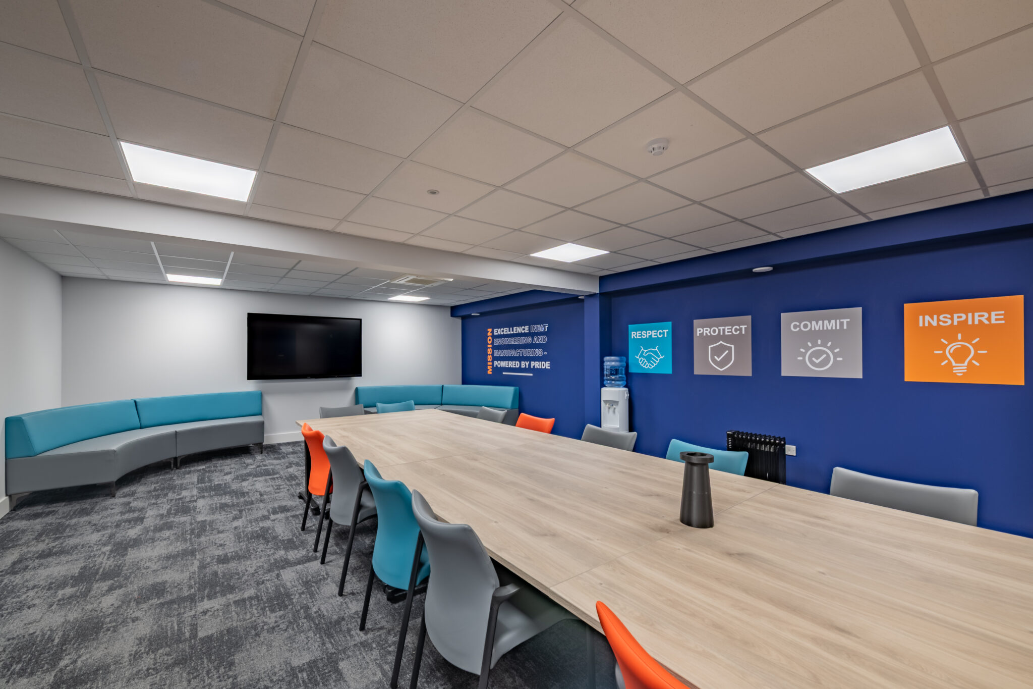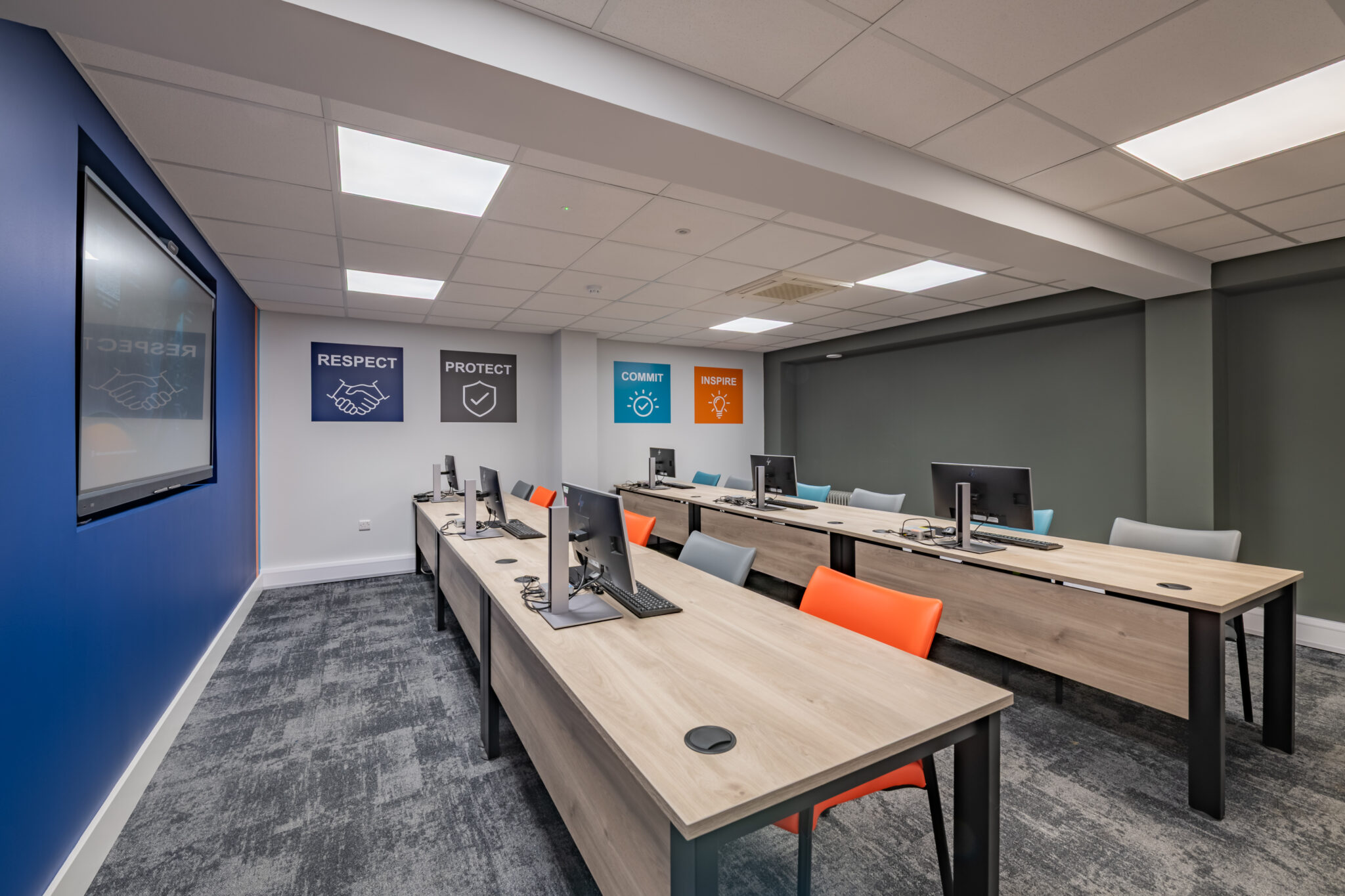 - Internal layouts were reconfigured to support collaboration, training and focused work, alongside clear circulation between spaces.