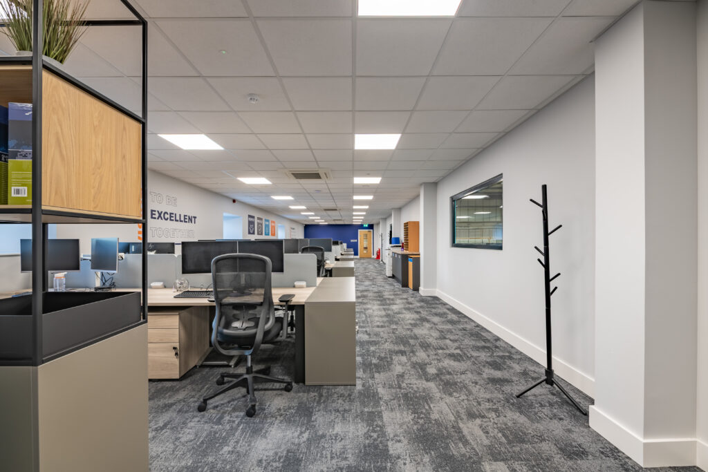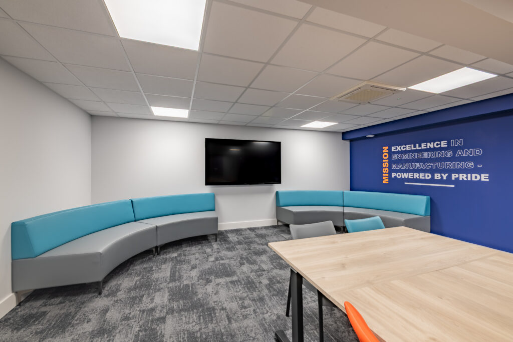 The brief focused on upgrading building services, increasing usable space, and creating a workplace that better supports wellbeing within an engineering-led environment.