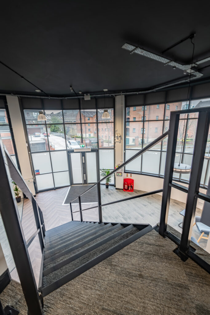 Vextrix, a multidisciplinary consultancy known for its creative and collaborative culture, appointed Opus 4 to transform a newly acquired shell unit in Castlefields into a dynamic and functional workspace. The goal was to create an office that reflected their innovative approach while making practical use of the building’s existing mezzanine and unique structural features.